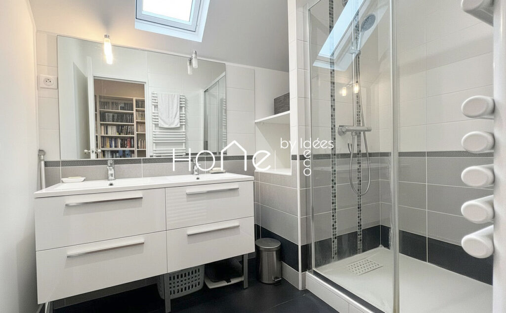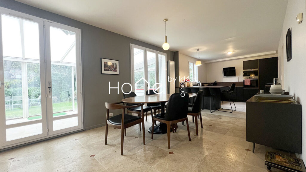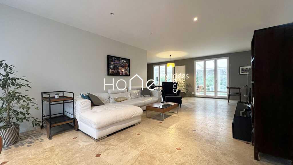 Entièrement rénovée avec des prestations de qualité, la maison se compose de 2 niveaux et comprend 5 chambres, dont une suite parentale de 28 m² avec sa propre salle de bains et une chambre au rez-de-chaussée avec sa salle d’eau privative.