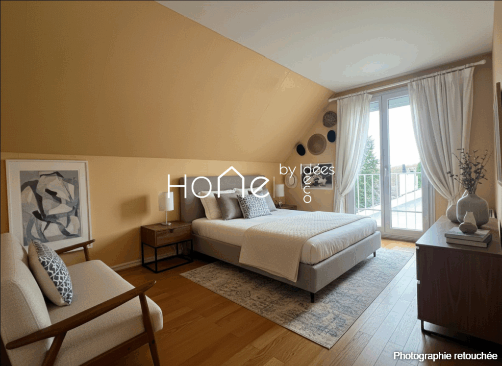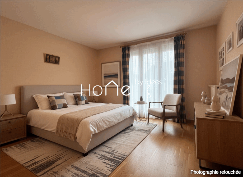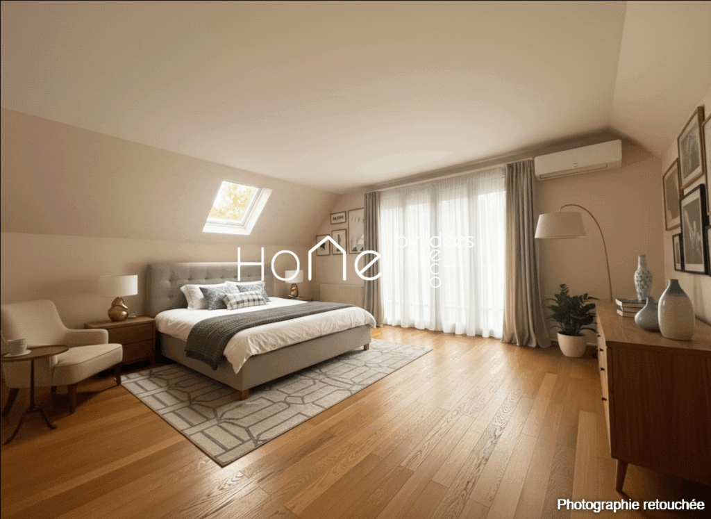 A noter que certaines photos du rdc ainsi que les photos des chambres proposent un aménagement généré par l’IA.