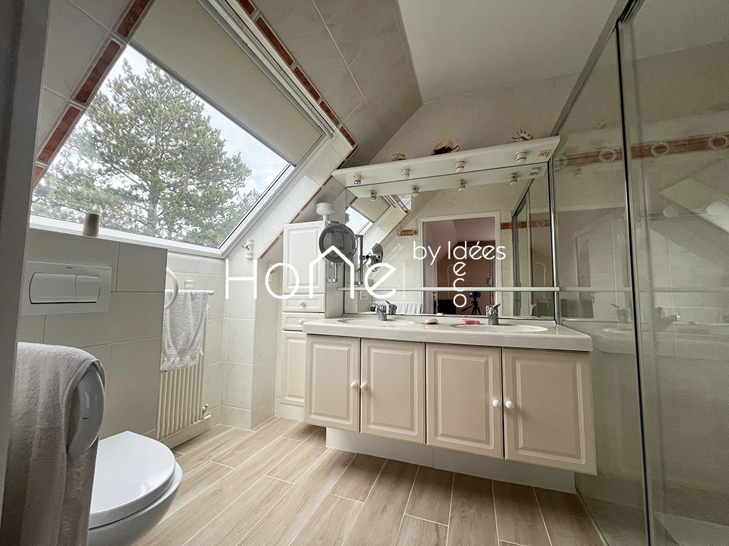 Sur un terrain verdoyant de 900 m2, au calme dans une impasse, le sol du salon ainsi que deux velux à l’étage ont été changés en 2025. Les combles sont aménagés. Toutes les fen^tres double vitrées sont équipées de volets roulant électriques.
